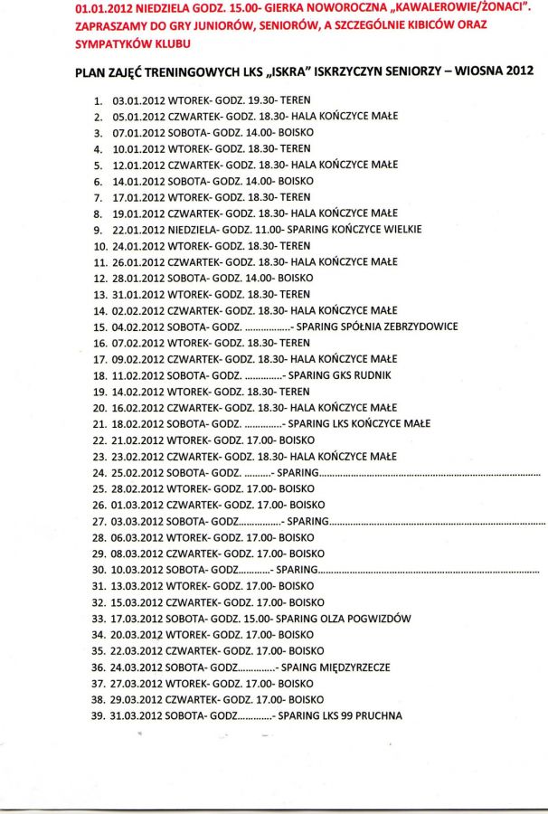 W jakie dni trenuje iskra i gdzie? |